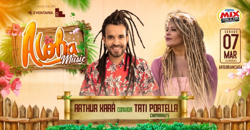 O Aloha está de volta em março! Trazendo Artur Xará e Tati Portella, vocalista da banda Chimarruts. O evento acontecerá no próximo dia 7, no Arquibancada Sports Bar. Vamos nos divertir com o melhor do reggae.