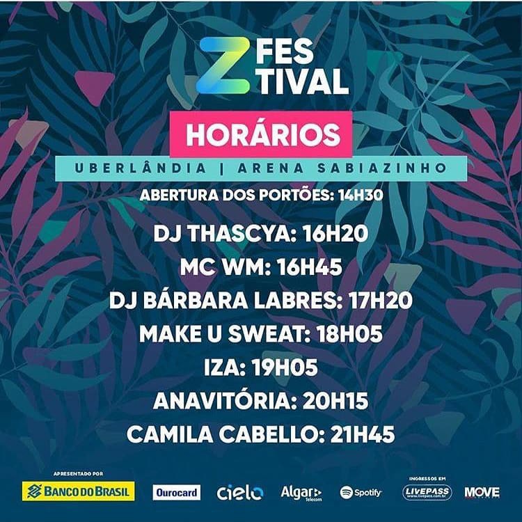 Line up: Camila Cabello, Anavitória, Iza, 1Kilo, Make U Sweat, MC WM, DJ Bárbara Labres e DJ Thascya