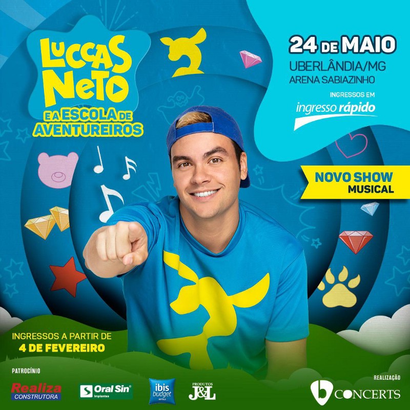 Você já pode comprar seu ingresso para a apresentação do novo espetáculo do Lucas Neto. “Luccas Neto e a Escola de Aventureiros” Chega a Uberlândia no dia 24 de maio. A apresentação será na Arena Sabiazinho. Garanta sua entrada pelo site do Ingresso Rápido.