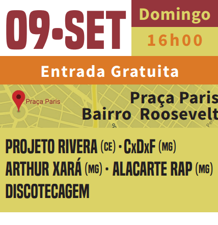 Para ir aquecendo as turbinas, o Pré-Timbre acontecerá neste domingo (9), na Praça Paris, Presidente Roosevelt, a partir das 16h, com entrada gratuita e as seguintes atrações: Projeto Rivera (CE), Arthur Xará (MG), Alacarte Rap (MG), Cxdxfx — Chafun Di Formio MG) e DJ