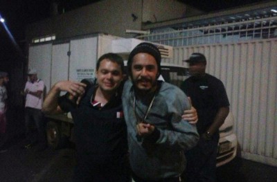 Mesmo depois das 5h da manhã, mesmo depois de um show com aproximadamente 1h20 de duração, Marcelo D2 esbanjou simpatia e trocou uma ideia, mesma que rápida, comigo e meus amigos. Bem humorado, D2 falou da “odisseia” que viveu nesta quinta-feira (30) para chegar à Uberlândia, no Triângulo Mineiro.