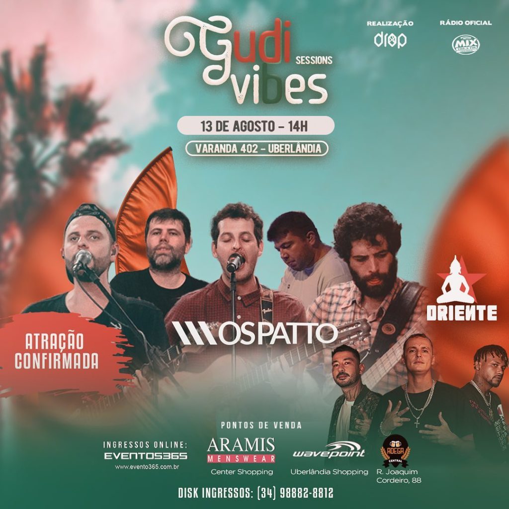 O festival Gudi Sessions vibes vai esquentar o seu sábado! Nessa edição, temos nomes que estão conquistando o público e já tá no playlist de muita gente como é o caso dos cariocas do Oriente, a batida forte do rap e a leveza do pop combinam um som bom de ouvir.