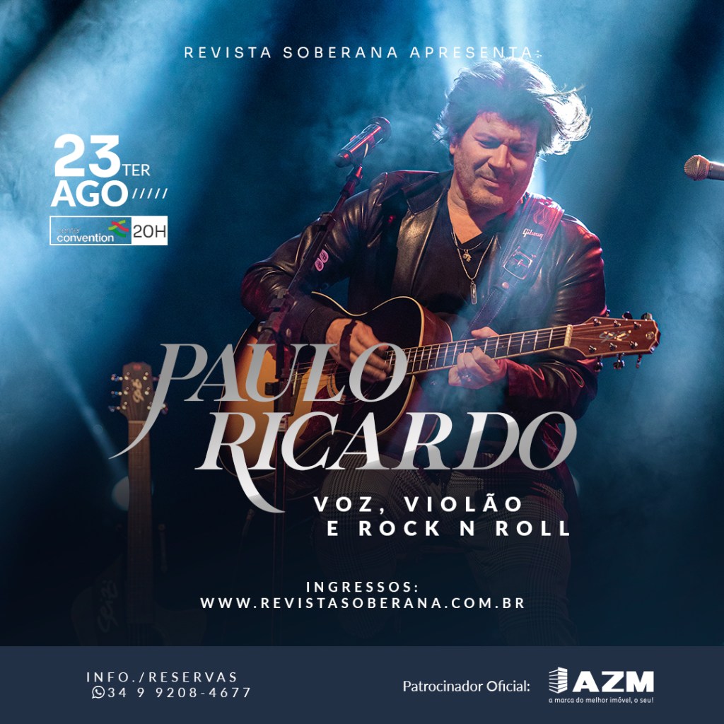 Paulo Ricardo espera a melhor energia dos fãs de Uberlândia, músico chega à cidade para fazer uma única apresentação no Center Convention, na próxima terça-feira (23), show marca a comemoração da 10ª edição da Revista Soberana. Você pode garantir sua entrada no site.