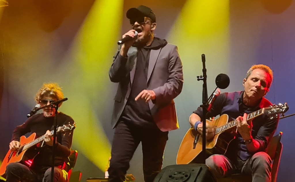 Lógico, tivemos outras histórias, mas se contamos um pouco do Sérgio Britto e também do Branco Mello, não poderia faltar do Tony Bellotto, né? Gente, que simpatia e humildade! O guitarrista dividiu com os fãs os desafios que enfrenta agora e o que está aprendendo após assumir os microfones ao lado dos companheiros. Depois de cantar “Polícia”, música de sua autoria, Tony fez questão de fazer referência ao amigo Sérgio Britto, responsável pela gravação original.