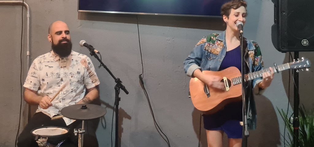 Nesse clima, os músicos mostraram suas influências e como são ecléticos, não se prendendo a um único estilo. Viajando por estradas diferentes, eles animaram o público, tocando de Vagabanda a Alanis, de Green Day a Gabriel o Pensador e muito mais, variando entre sucessos nacionais e internacionais. Mais um momento muito bacana foi quando a dupla tocou uma canção autoral, acredito que o público não a conhecia, mas Claudio percebeu algumas pessoas tentando cantar junto, isso é bem legal!