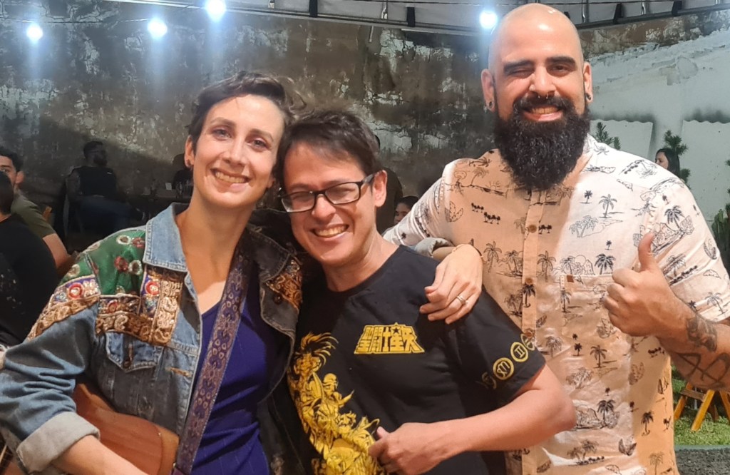 No entanto, boa parte da noite, eu divide mesa com os casais Breno e Gabriela, Fernando, a esposa e e os filhos e mais alguns novos amigos.