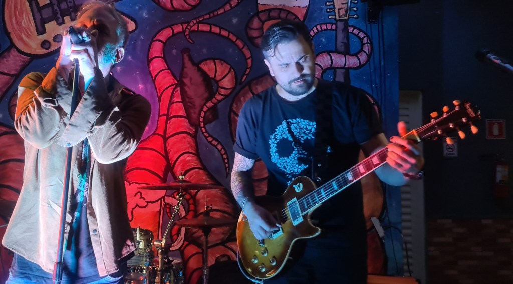 Para começar, Woody, Fábio, Tico, Anderson e Moises relembraram sucessos atemporais das décadas de 60, 70, 80 e 90. Nirvana, Beatles, Rolling Stones e muito mais. O clima seguia lá no alto que até teve substituição de guitarrista. No clássico “Should I Stay or Should I Go” quem assumiu a guitarra foi Rafael Rezende, que já fez parte da banda Matusa.