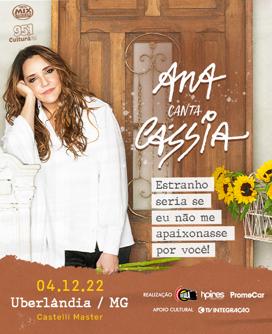 On-line Bilheteria Digital: https://bilheteriadigital.com/ana-canta-cassia-uberlandia-04-de-dezembro