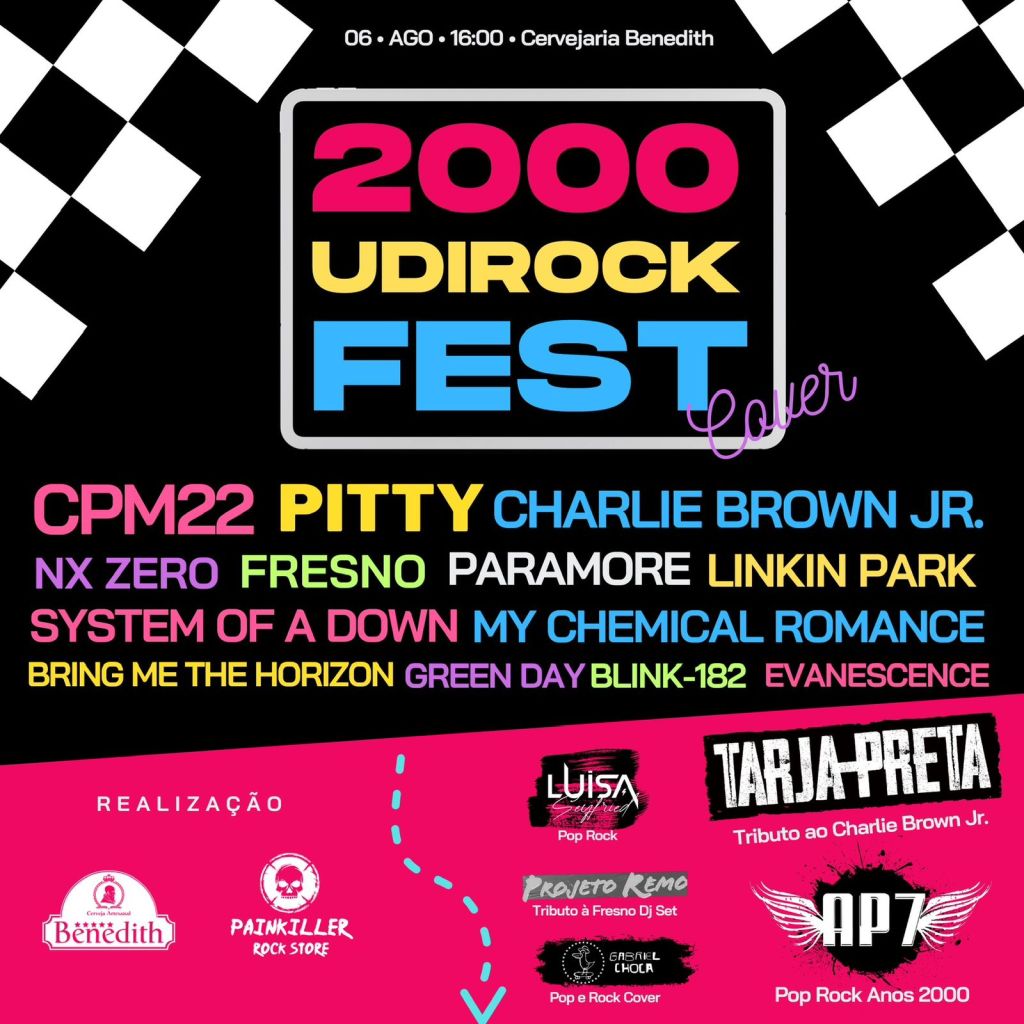 Domingo é dia de descanso, mas também é dia de lembrar o som que fez algumas gerações gostar de música. Se você é fã de Charlie Brown, Fresno, NX Zero, Arvril Lavigne, System Of A Down, CPM22 e tantos outros nomes que marcaram o fim dos anos 90 e o começo deste novo século, você tem que levantar do sofá, colocar aquela roupa preta e chamar a galera para curtir o Udi Rock Fest, na Cervejaria Benedith.