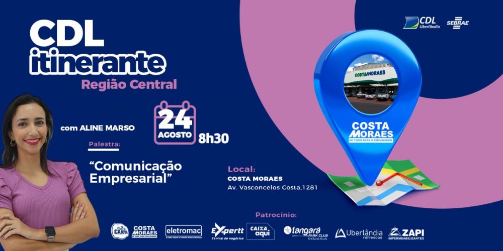 No próximo 24 de agosto, a partir das 8h30, teremos mais uma edição do CDL Itinerante, um projeto da Câmara de Dirigentes Lojistas Uberlândia, que percorre diversos pontos estratégicos da cidade, levando conhecimento, networking, serviços gratuitos, consultorias e muito mais!