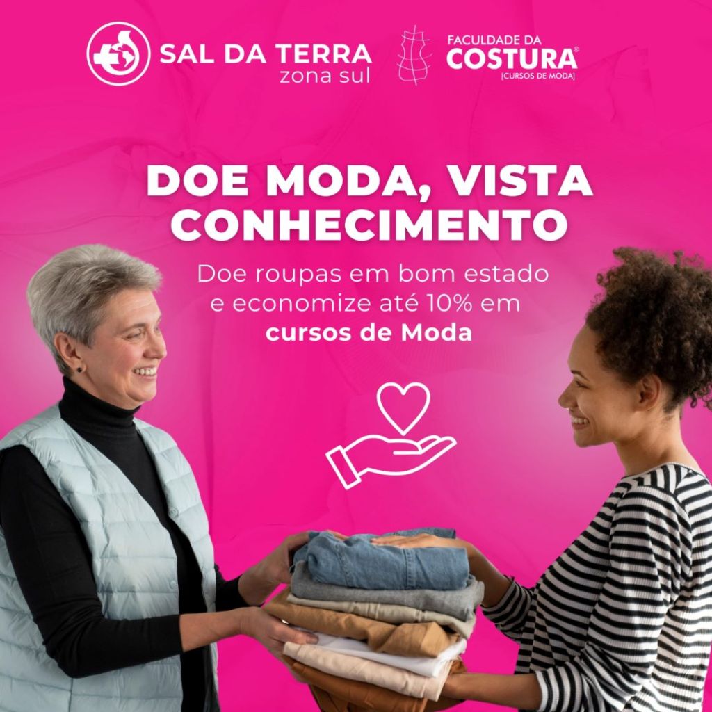 Com o lema “Doe Moda, Vista Conhecimento” a escola, em parceria com a Igreja Sal da Terra Zona Sul, está arrecadando roupas em bom estado de conservação e oferecendo até 10% de desconto em seus cursos de Moda
