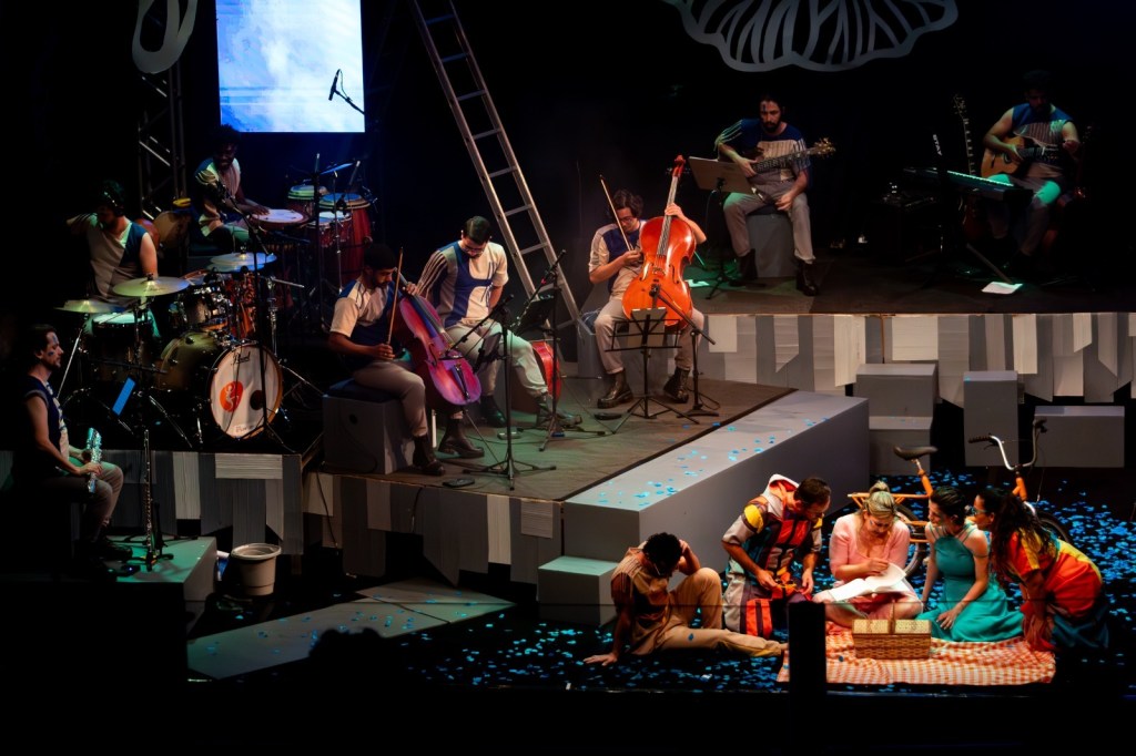 Para reproduzir o disco ao vivo, o Grupo EMCANTAR caprichou na produção musical do espetáculo e apresenta em cena uma banda de nove músicos, alguns multi-instrumentistas, e ainda convidados especiais, como o violoncelista Kayami Satomi.