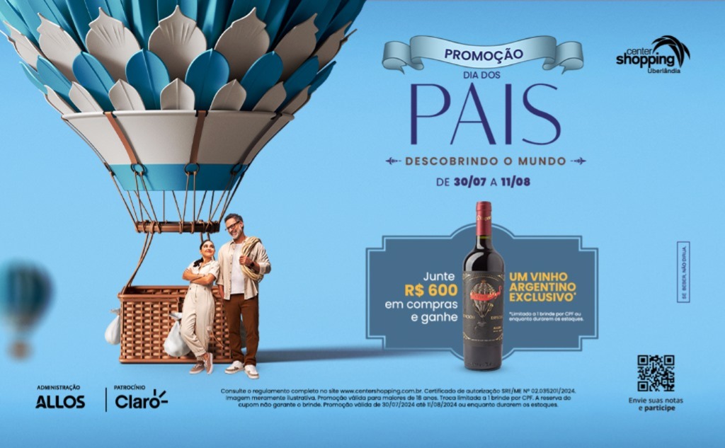 Center Shopping Uberlândia celebra o Dia dos Pais com campanha que presenteia consumidores com vinho especial