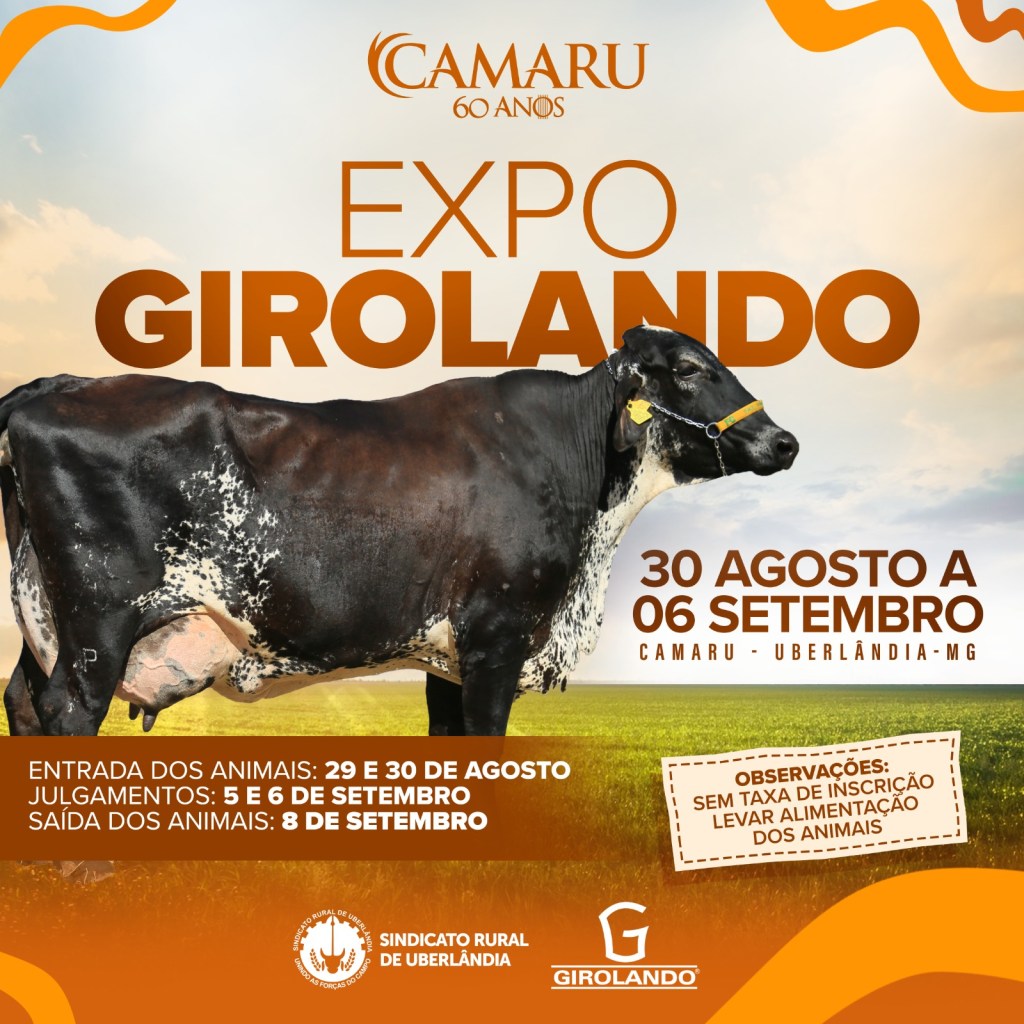 A Exposição Agropecuária de Uberlândia – Camaru Rodeio Show 60 Anos – terá entre as suas atividades técnicas uma exposição ranqueada da raça Girolando. A expectativa da organização é receber inscrição de cerca de 120 animais de criatórios de Minas Gerais, São Paulo e Goiás. Os julgamentos acontecerão nos dias 5 e 6 de setembro, das 8 às 18 horas, nos pavilhões 1 e 2. A entrada dos animais acontecerá nos dias 29 e 30 de agosto e permanecerão em exposição no parque até 8 de setembro.