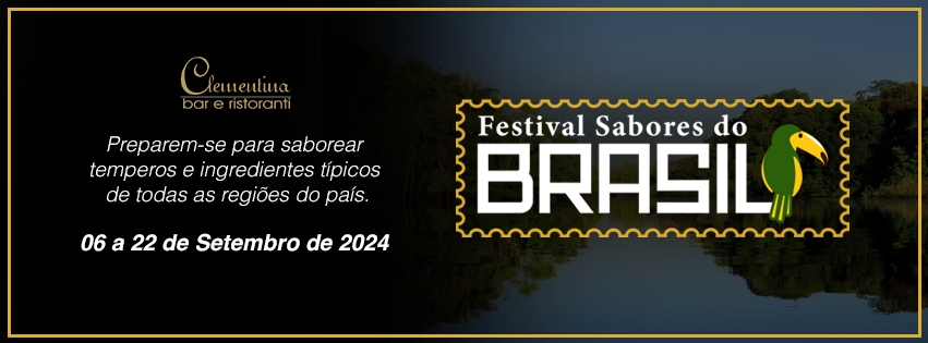 A culinária Brasileira é protagonista em mais um festival do Clementina Bar e Ristoranti, vem aí o ‘Festival Sabores do Brasil’. Do dia 06 até o dia 21 de setembro, o público poderá ter uma nova experiência gastronômica em que as estrelas serão a variedade de pratos que só o Brasil pode oferecer. O menu completo – entrada, prato principal e sobremesa – pode ser adquirido por R$210,00 por pessoa. É necessário fazer reserva prévia por meio do clementinabareristoranti.com.br.