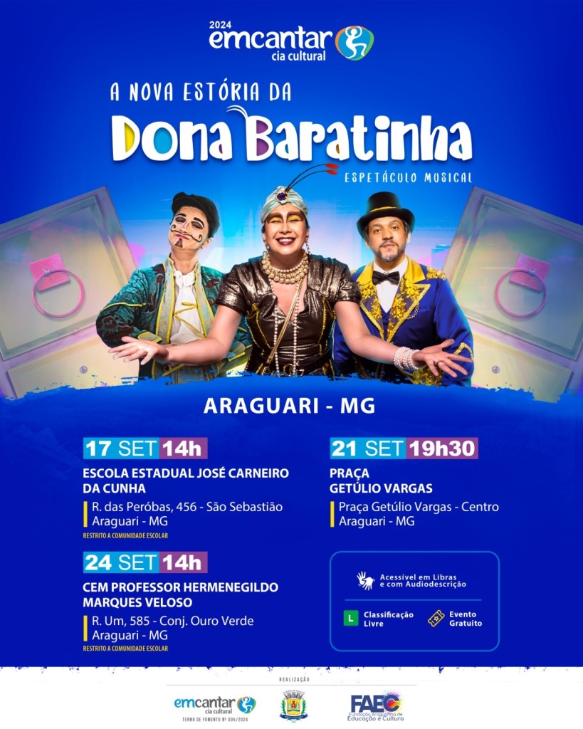 apresentar em duas escolas públicas de Araguari e na Praça Getúlio Vargas, para toda a comunidade.