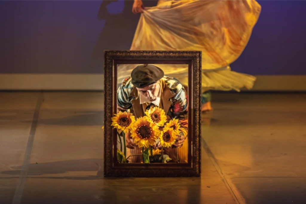 “Girassóis” é um espetáculo de dança infanto-juvenil inspirado nas obras de Vicent Van Gogh, sob a direção de Miriam Druwe. Detentor de uma força espiritual tão extraordinária como incontrolável, o pintor holandês encontrou, seja por amor seja por exercício de sobrevivência, um modo de expressar suas paixões e sentimentos através de suas telas.