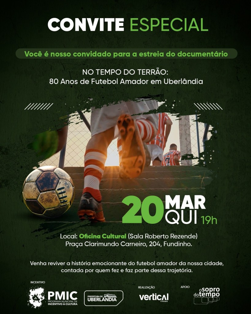 O documentário No Tempo do Terrão: 80 Anos de Futebol Amador em Uberlândia é um longa-metragem de 50 minutos que resgata a trajetória do futebol amador na cidade ao longo de oito décadas. Por meio de depoimentos de 12 personagens – incluindo o ex-presidente da Liga Uberlandense de Futebol (LUF) 2020/2024, ex-jogadores, árbitros e dirigentes de alguns dos clubes mais tradicionais e atuantes no campeonato de 2024 –, o filme narra momentos marcantes dessa história.