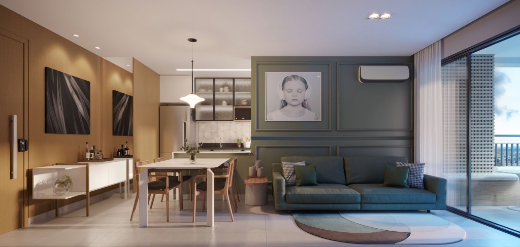 “A proposta dessa planta é aliar espaço e funcionalidade. Os ambientes são integrados, bem distribuídos e conectados à varanda, o que traz mais amplitude e conforto. A área social, composta por living, jantar e cozinha, convida à convivência. Essa tipologia se integra perfeitamente à área de lazer do empreendimento, oferecendo uma experiência sofisticada de morar”, comenta Daniela Senju, coordenadora de projetos da Brasal Incorporações – Filial Uberlândia.