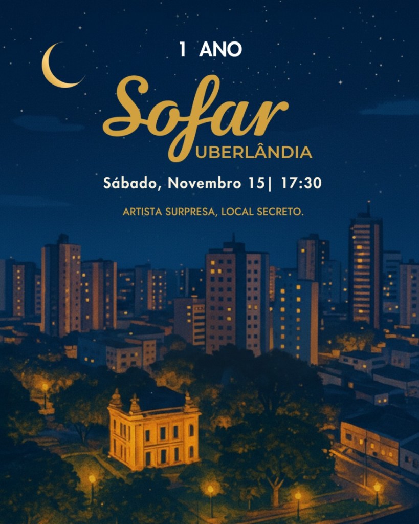 O Sofar não é apenas um show é uma experiência tripla de Música Segredo e Conexão. O que começou há 16 anos em Londres e há 13 no Brasil, revolucionou a forma de ouvir música ao vivo e agora celebra seu sucesso em Uberlândia. Para a festa de aniversário, prometemos a essência pura do projeto: um palco intimista em um local completamente inesperado com um público que realmente se concentra na arte e um line-up de artistas revelado apenas na hora.