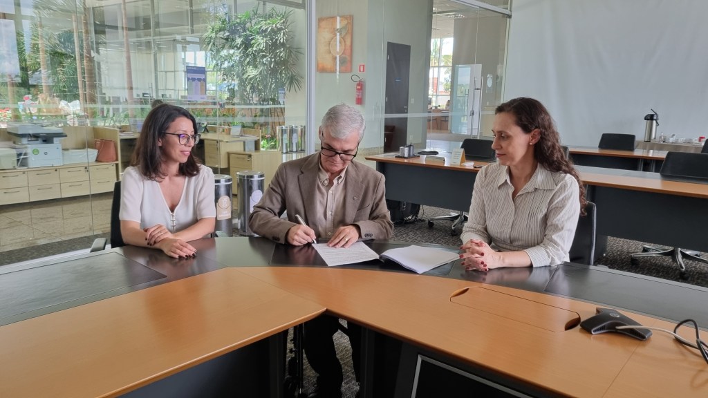 Para formalizar essa cooperação, um momento de assinatura do termo de parceria aconteceu na Algar Holding na sexta-feira (05/12), com a presença de autoridades da gestão da UFU, incluindo o reitor Carlos Henrique de Carvalho, a vice-reitora Catarina Azeredo Machado, o pró-reitor de Pesquisa e Pós-Graduação Thiago Paluma e a diretora de inovação e transferência de tecnologia, Luciana Carvalho. Representando o Instituto Algar estiveram a gerente Carolina Toffoli, a gestora de programas sociais Ana Paula Pereira e a diretora da Partilha Educação e assessora educacional do Talentos de Futuro, Ana Carolina Ferreira.
