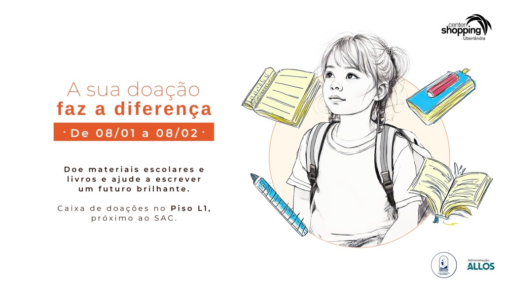 O Center Shopping Uberlândia realiza, de 8 de janeiro a 8 de fevereiro, mais uma edição da campanha “Volta às Aulas”, com o objetivo de arrecadar materiais escolares para crianças em situação de vulnerabilidade social. A ação convida clientes, lojistas e colaboradores a contribuírem com a doação de itens essenciais para o início do ano letivo.