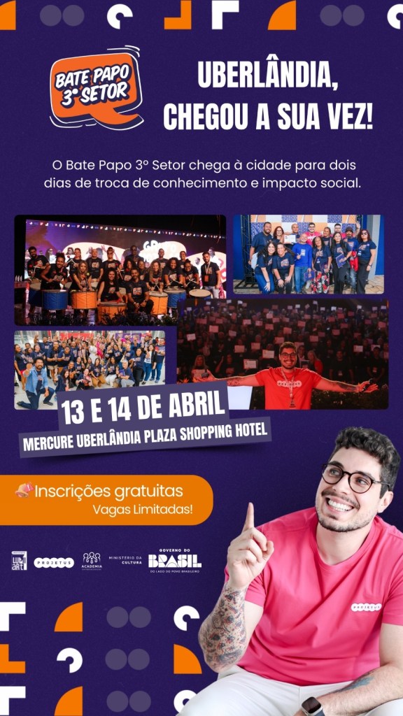 A programação inclui painéis, apresentações culturais e debates, garantindo dois dias de intenso aprendizado, networking e troca de experiências. As inscrições são gratuitas, com vagas limitadas, e devem ser realizadas por meio da plataforma Sympla: sympla.com.br/evento/bate-papo-3-setor-uberlandia-mg/3335669