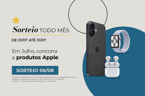 Center Shopping vai sortear produtos Apple para clientes que realizarem compras em julho